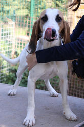 Die Geschichte von Thenor ist bewegend und traurig zugleich. Vor etwa 1,5 Jahren wurde er zusammen mit seinem Bruder von einem Jäger in ein französisches Tierheim gebracht – wie so oft, weil die Hunde für die Jagd „nichts taugen“. Doch es blieb nicht bei der Abgabe: Der Jäger kam mit seinem Gewehr und drohte, die beiden Hunde auf der Stelle zu erschießen, falls das Tierheim sie nicht aufnimmt. Selbstverständlich wurden sie aufgenommen, auch wenn kein Platz mehr zur Verfügung stand. Sein Bruder hatte diesen Frühling das Glück, adoptiert zu werden – Thenor jedoch wartet noch immer traurig hinter Gittern auf seine Chance. Er ist ein verschmuster Hund, der die Nähe zu Menschen über alles liebt. Sein Blick voller Güte und seine große Sehnsucht nach Zuwendung lassen jedes Herz dahinschmelzen. Mit seiner neugierigen Nase entdeckt er begeistert die Welt um sich herum. Auf Spaziergängen zeigt er sich manchmal kräftig, da er voller Energie und Lebensfreude steckt. Er ist ein Hund, der Bewegung und Auslauf braucht – ein echter Sonnenschein, der die Natur liebt und seine Freiheit genießen möchte. Schenken Sie ihm die Chance, ein vollwertiges Familienmitglied zu werden – er wird es Ihnen tausendfach zurückgeben. Thenor teilt zur Zeit seine Box mit zwei Rüden.
