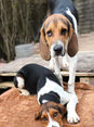 Als typischer Meutehund ist er sehr offen und freundlich, wenn er andere Hunde trifft. Er lernt jedoch, dass nicht jeder Hund sofort stürmisch begrüßt werden möchte und nicht immer sofort eine Party steigt. Auf Gegenimpulse der anderen Hunde reagiert er sensibel und mit Akzeptanz.
