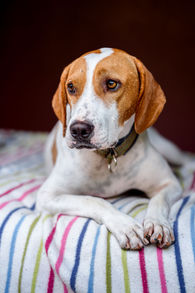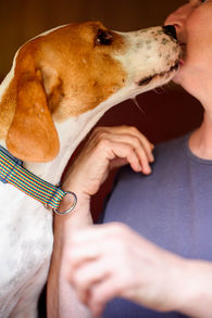 Oft findet man Kan an einem ruhigen Plätzchen, wo er ein Nickerchen macht. Sobald man bei den Hunden ist, sucht er die Nähe zum Menschen. Er stellt sich dann ruhig und nicht aufdringlich neben einem, gerne kuschelt er sich vorsichtig an einem an. Übergriffig und fordernd haben wir ihn hier noch nie erlebt. Ein ganz feiner Kerl - so könnte man ihn beschreiben. Er geht recht schön an der Leine, kann da aber auch mal ziehen, wenn er sich sehr freut. In der Regel sind Spaziergänge aber sehr entspannt und partnerschaftlich mit Kan, denn jagdlich zeigt er bei uns kein Interesse. Mit seinem Aktiv - Paten liebt er es auch mal zu joggen und macht das richtig großartig.
