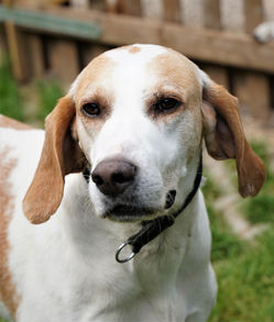 Leon ist ein ruhiger, gelassener, sehr freundlicher, verschmuster Foxhound Rüde.