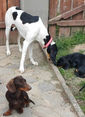 Im Zusammenleben mit anderen Hunden – unserer eigenen Pflegestellen-Hündin eingeschlossen – verhält sie sich durchweg höflich und sozial. Alleinbleiben klappt in ruhigen Momenten schon recht ordentlich. Frustrationstoleranz und Geduld beim Warten verbessern sich täglich.