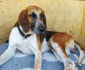 Noja ist ein wunderschöner, anhänglicher sehr verschmuster witziger Grand Anglo Francais Rüde. Er war ein Fundhund und zeigte sich vor Ort in der stressigen Tierheim Situation erst mal sehr skeptisch. Hier auf der Pflegestelle ist er eine toller verträglicher großer Witzbold. Er zeigt anderen Rüden gegenüber schon mal Standing aber das endet immer ohne große Streitereien. Er ist sehr lernwillig und möchte gefallen.