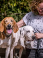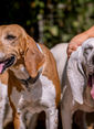 Olonne, Plume und Ulla wurden auf eingezäunten Freilauffläch, einer ehemaligen Meute gefunden. Der Besitzer war verstorben. Man hatte die anderen Hunde unter anderen Jägern aufgeteilt. Die drei wollte Niemand. Florence/ Hathi hat gefragt, ob wir die drei auf nehmen können. Gerne haben wir zugesagt, da gerade Anglo Francais Hündinnen immer schnell bei uns ein Zuhause finden.