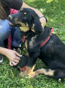 Oscar ist ein verspielter Welpe. Er liebt Hunde, Menschen, Spielzeug und Rennen. Er liebt es zu kuscheln.