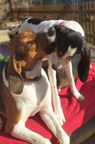 Sultan, Soprano + Sirene sind Geschwister aus dem gleichen Wurf. Sie wurden bei Florence/ Hathi von einem Jäger abgegeben, weil sie zu klein für die Wildschweinjagd sind, Es sind mittelgroße, freundliche, aktive, verträgliche, junge freundliche Laufhundmixe.