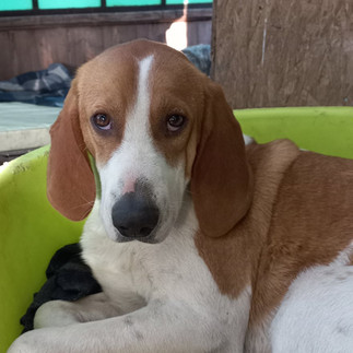 DJINO kleiner kastrierter Anlgo Rüde, blanc et orange geb.: 28.02.2020 Größe: 63 cm 22 kg